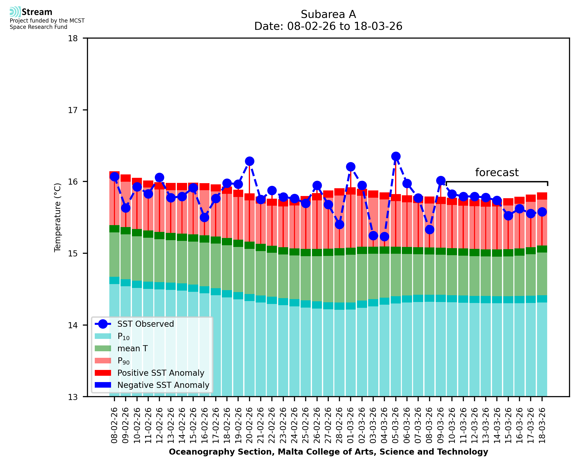 Elaborated by STREAM, the service provides daily analysis of sea surface temperature (SST) anomalies, including spatial maps for marine heat wave occurrence and intensity in the Malta shelf area. The service is based on ultra high resolution SST nighttime observations made by the infrared sensors mounted on different satellite platforms. Personalised user requests for detailed pixel-based data visualisation and access are available operationally on the STREAM web and mobile app.