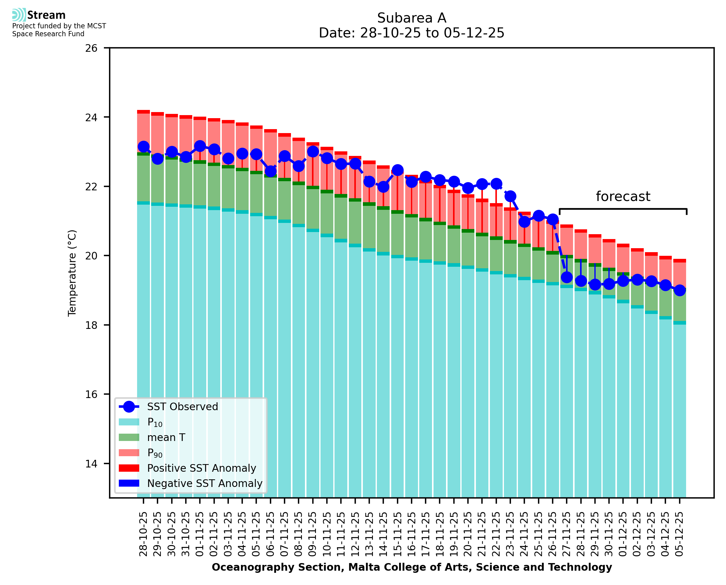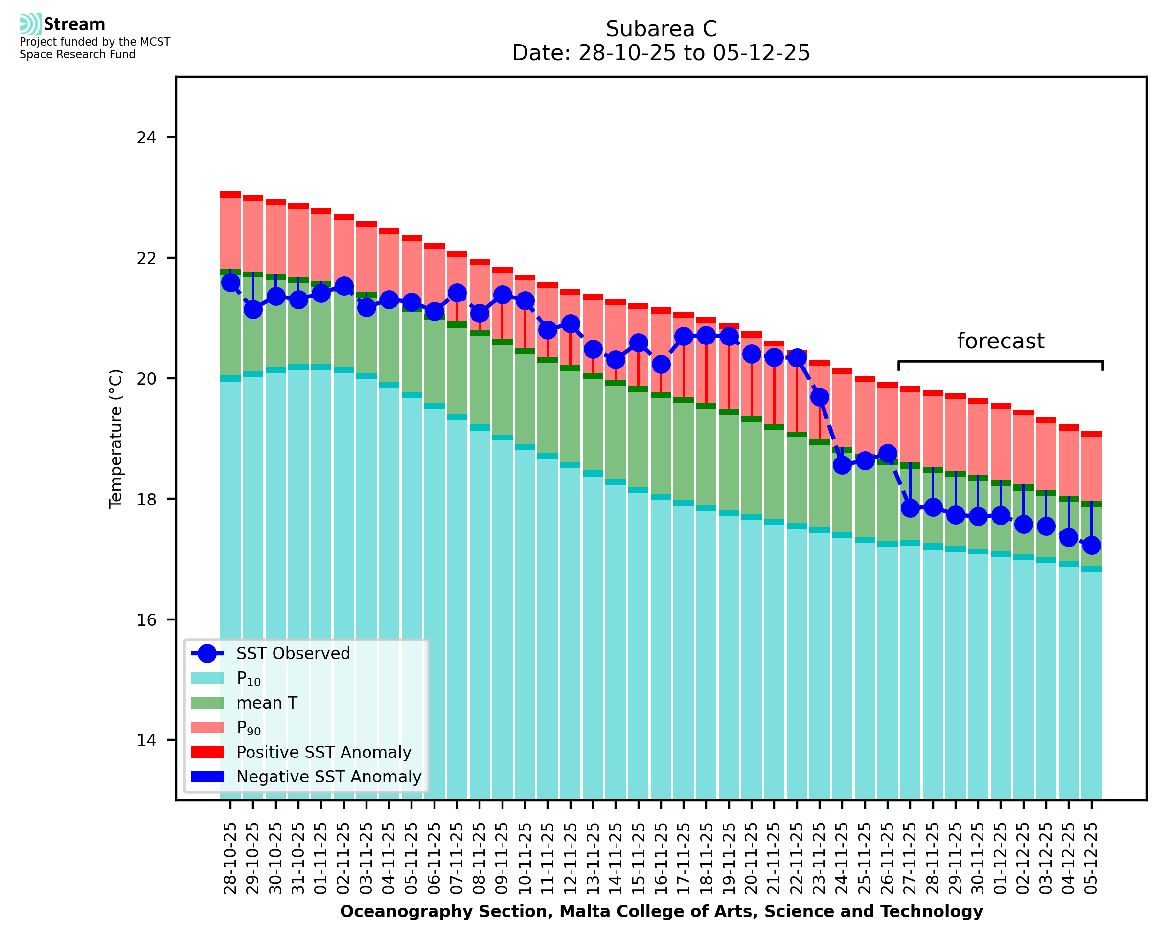 Elaborated by STREAM, the service provides daily analysis of sea surface temperature (SST) anomalies, including spatial maps for marine heat wave occurrence and intensity in the Malta shelf area. The service is based on ultra high resolution SST nighttime observations made by the infrared sensors mounted on different satellite platforms. Personalised user requests for detailed pixel-based data visualisation and access are available operationally on the STREAM web and mobile app.
