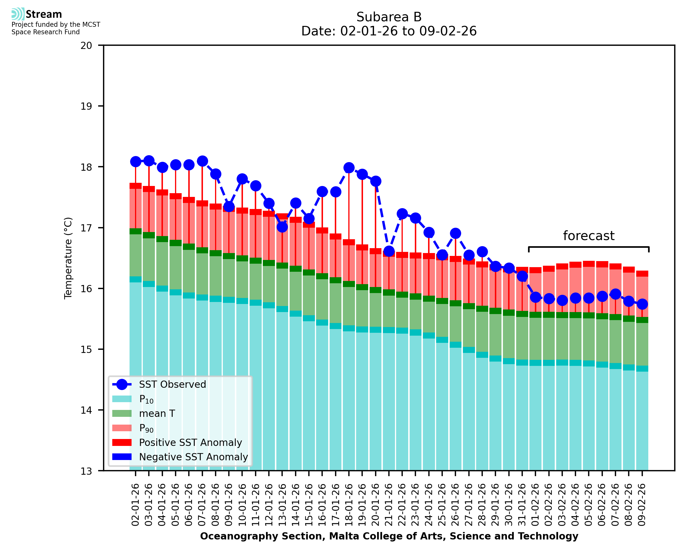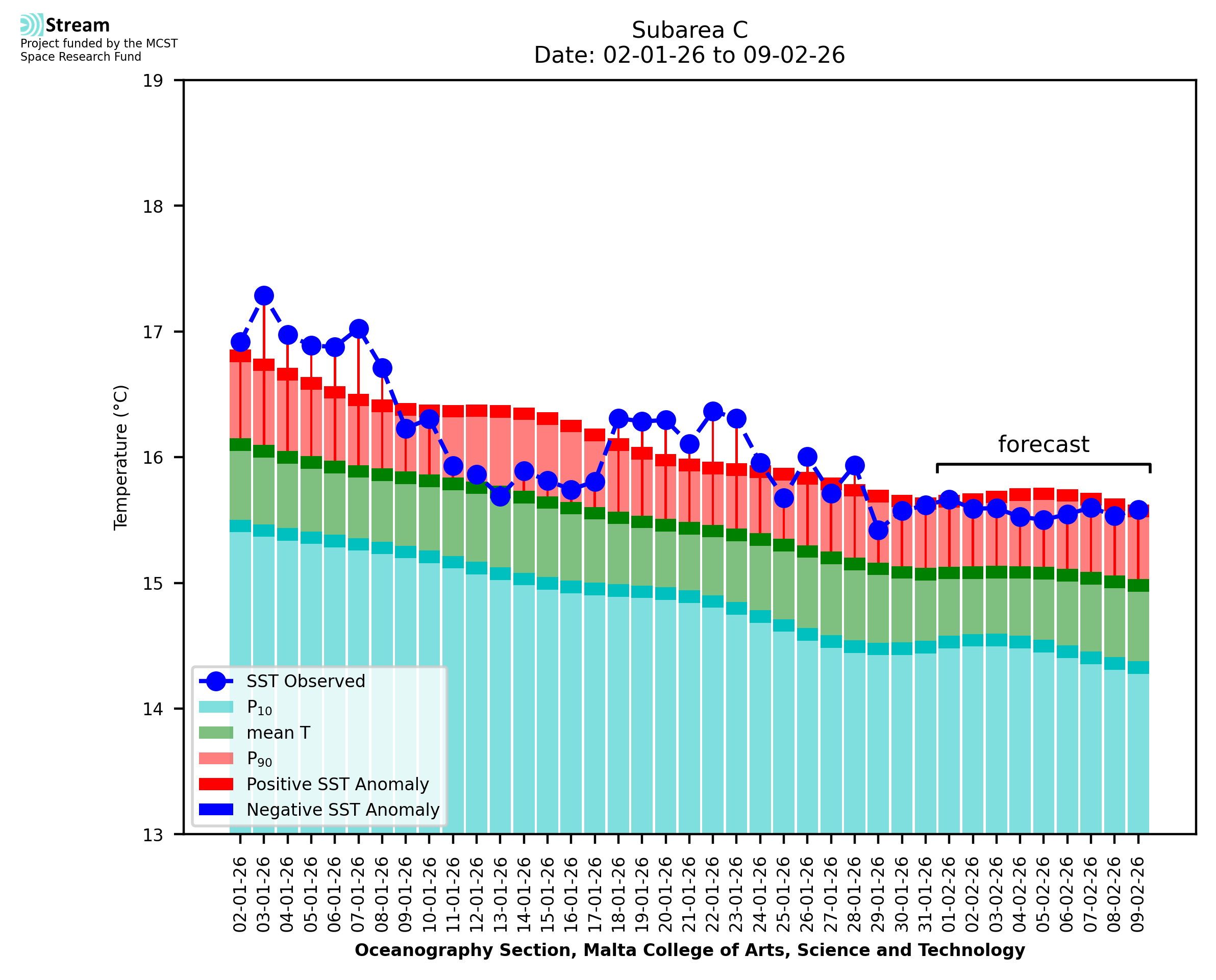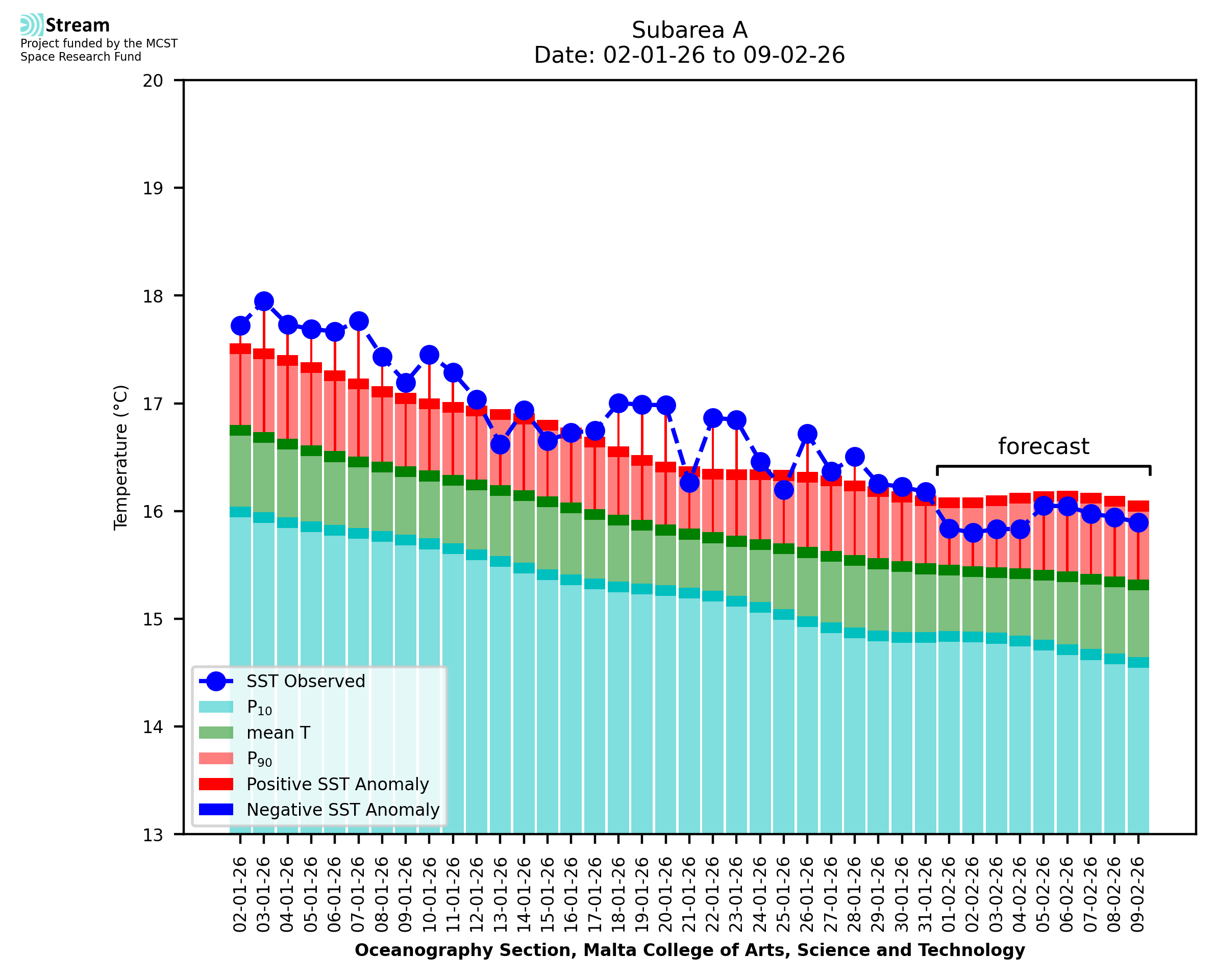 Elaborated by STREAM, the service provides daily analysis of sea surface temperature (SST) anomalies, including spatial maps for marine heat wave occurrence and intensity in the Malta shelf area. The service is based on ultra high resolution SST nighttime observations made by the infrared sensors mounted on different satellite platforms. Personalised user requests for detailed pixel-based data visualisation and access are available operationally on the STREAM web and mobile app.